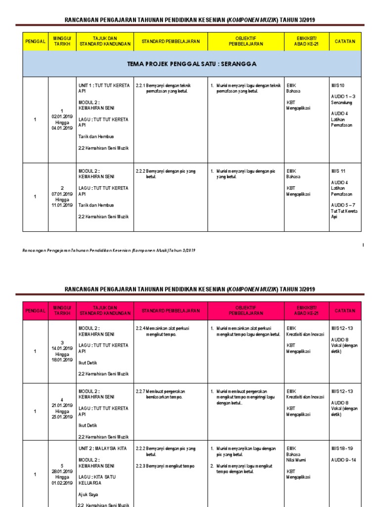 Rpt Kssr Pendidikan Kesenian Muzik Tahun 3 2019 Pdf